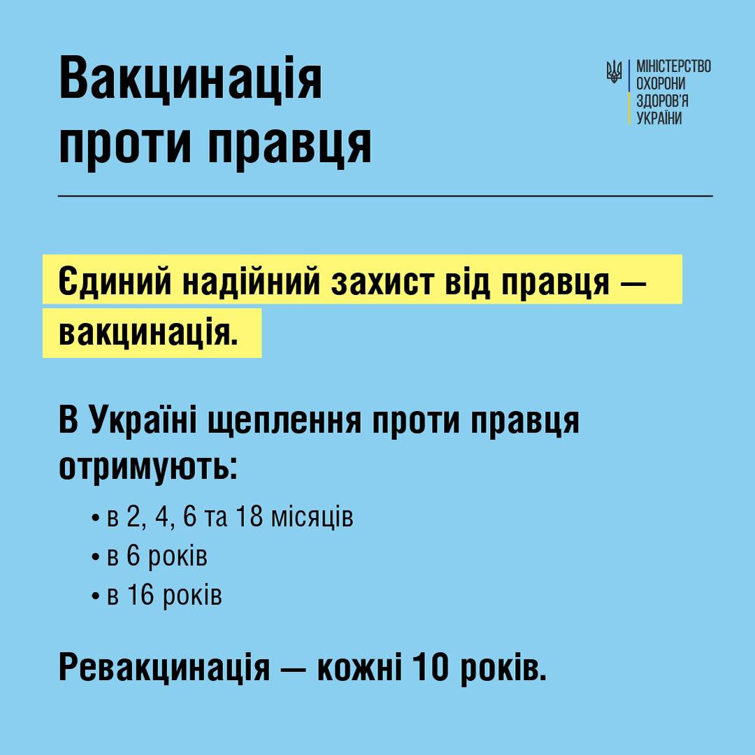 Згідно з календарем профілактичних щеплень, для комплексного захисту треба вакцинуватися від правця шість разів у дитячому віці: у 2, 4, 6 місяців, а потім у 1,5, 6 та 16 років. Дорослим людям варто посилювати опір організму до цієї хвороби що десять років: у 26, 36, 46 тощо.
