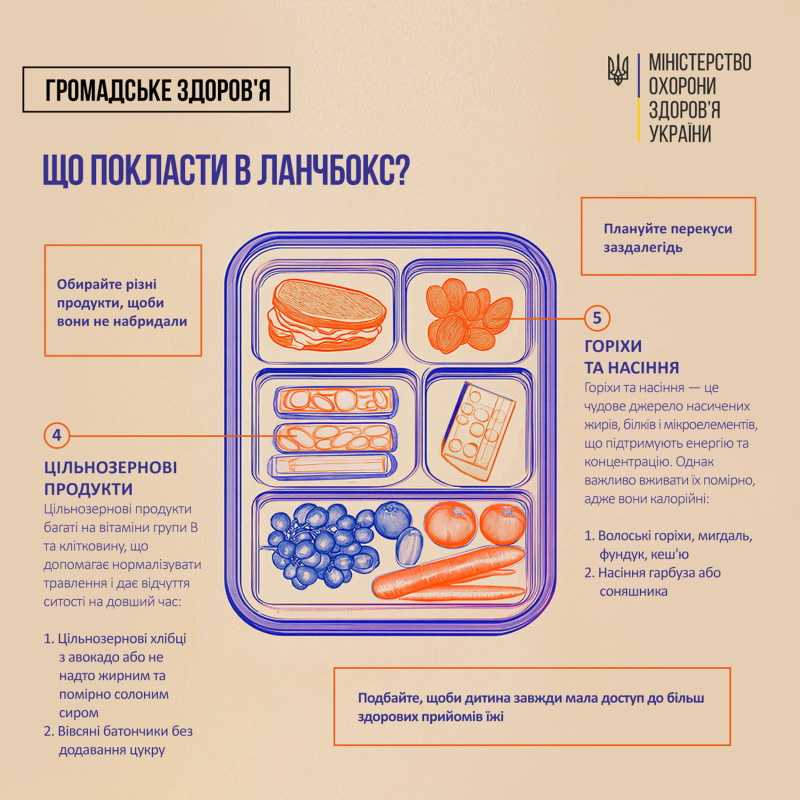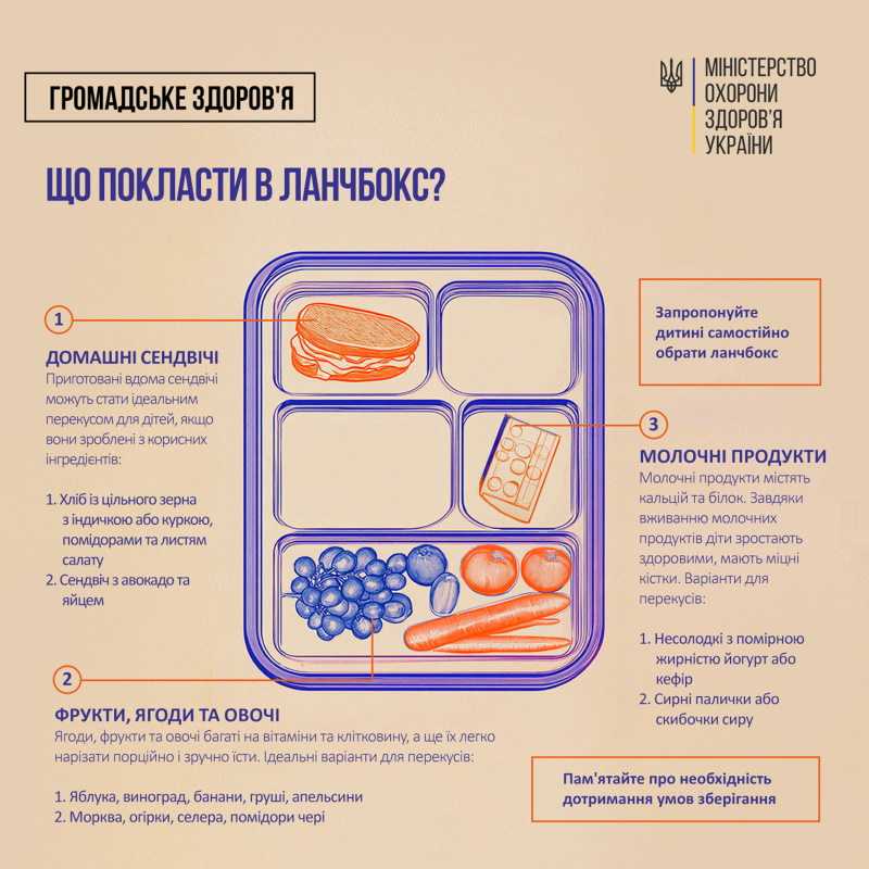 До речі, у каруселі, представленій нижче, можна почерпнути корисні поради МОЗ щодо того, чим доцільно 😋 заповнювати ланчбокс учня, якщо він не харчується у шкільній їдальні.