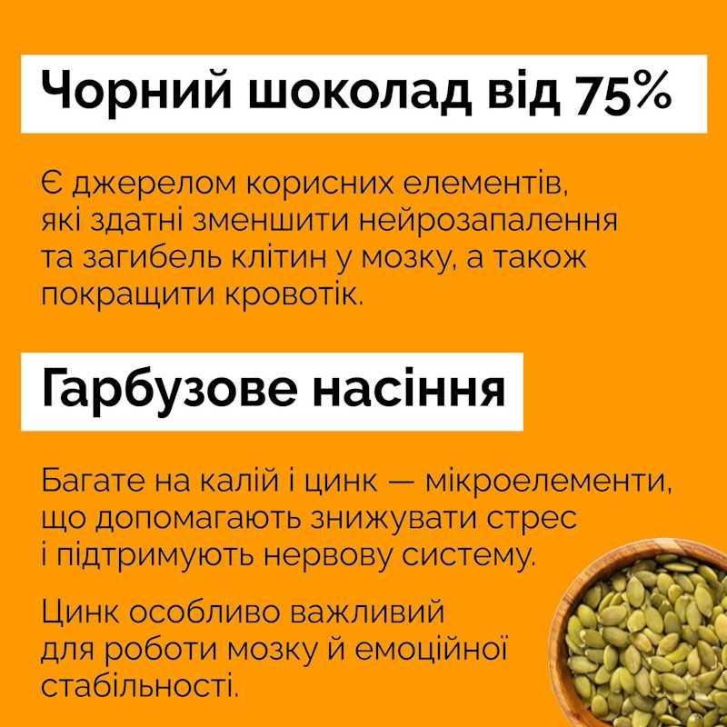 Нерідко хвилювання / занепокоєння / відчуття тривоги «скеровують» нас у бік холодильника. І тут важливо обрати правильні харчі. Адже деякі продукти здатні «заспокоювати» , оскільки містять речовини, що підтримують мозок і нервову систему, допомагають регулювати настрій та зменшують тривожність у довгостроковій перспективі.