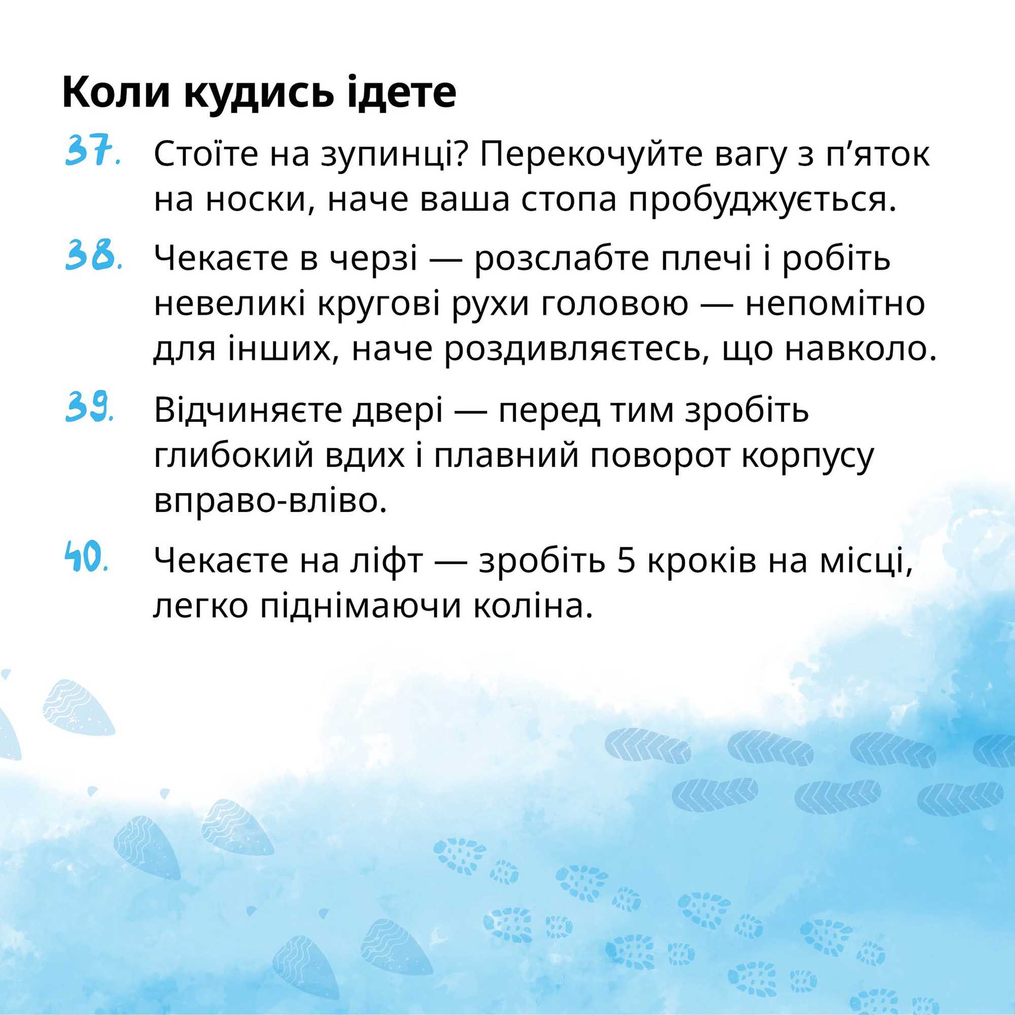 Загалом ідей, як «непомітно» додати спорт у власне життя, – безліч. Наприклад, фахівці UNICEF Ukraine пропонують аж 40 способів, як це зробити. Тож переглядайте 👇 та зберігайте. Якісь із них вам вочевидь можуть стати у пригоді 😉!