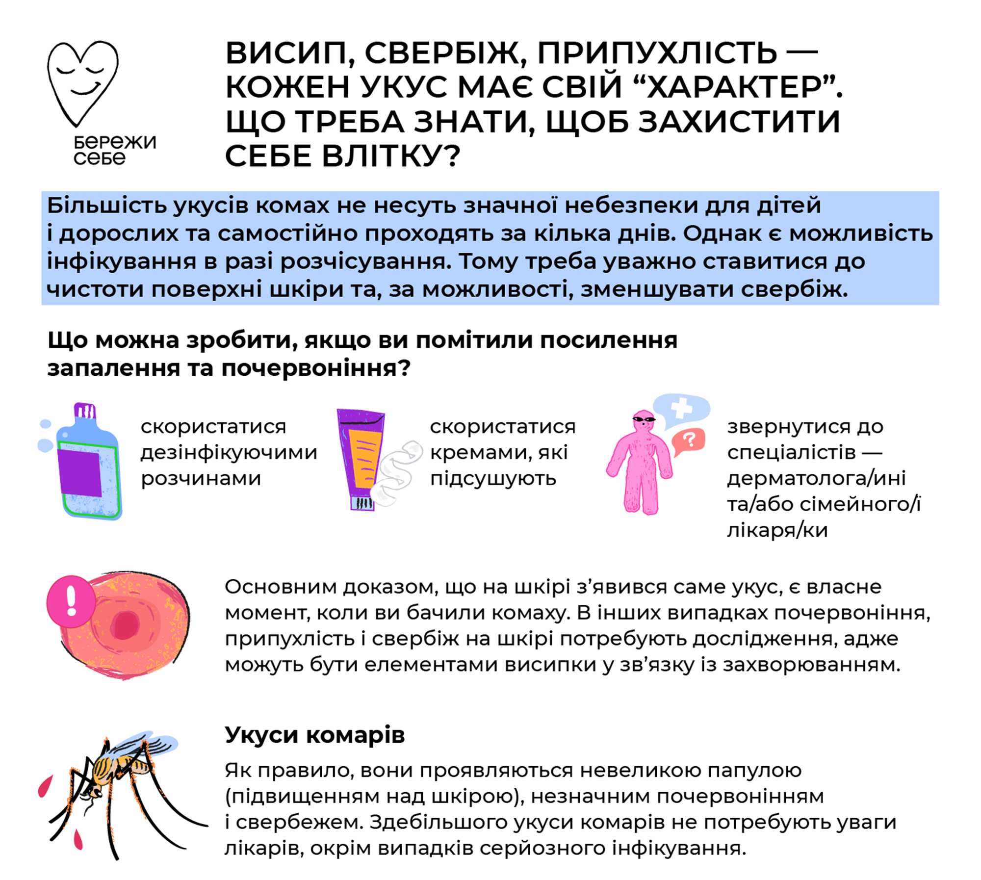 У ЦПМСД №1 наголошують, що істотно знизити ризики розвитку серйозних алергічних проявів допоможе профілактика: антимоскітні сітки на вікнах, закритий одяг, репеленти, фумігатори, антигістамінні препарати тощо.