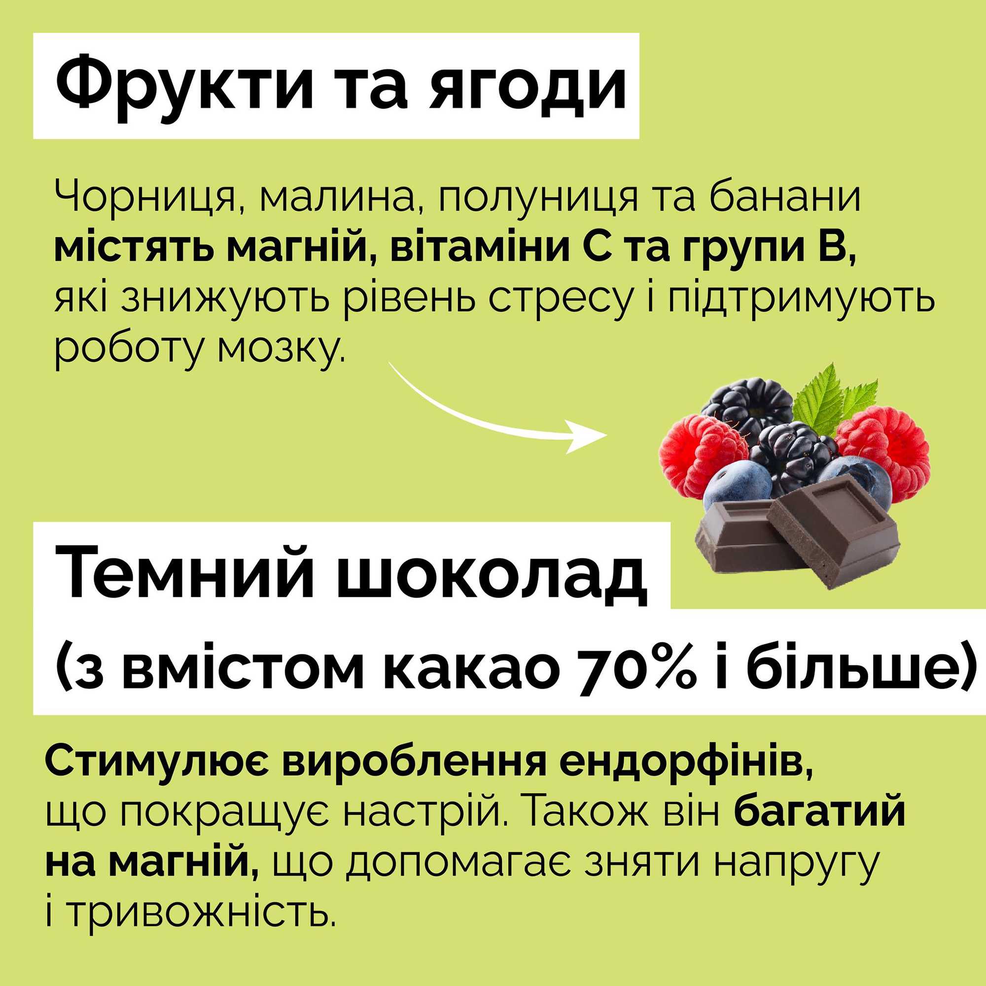 До продуктів, що і здоров’я додають, і настрою, зокрема, належать: