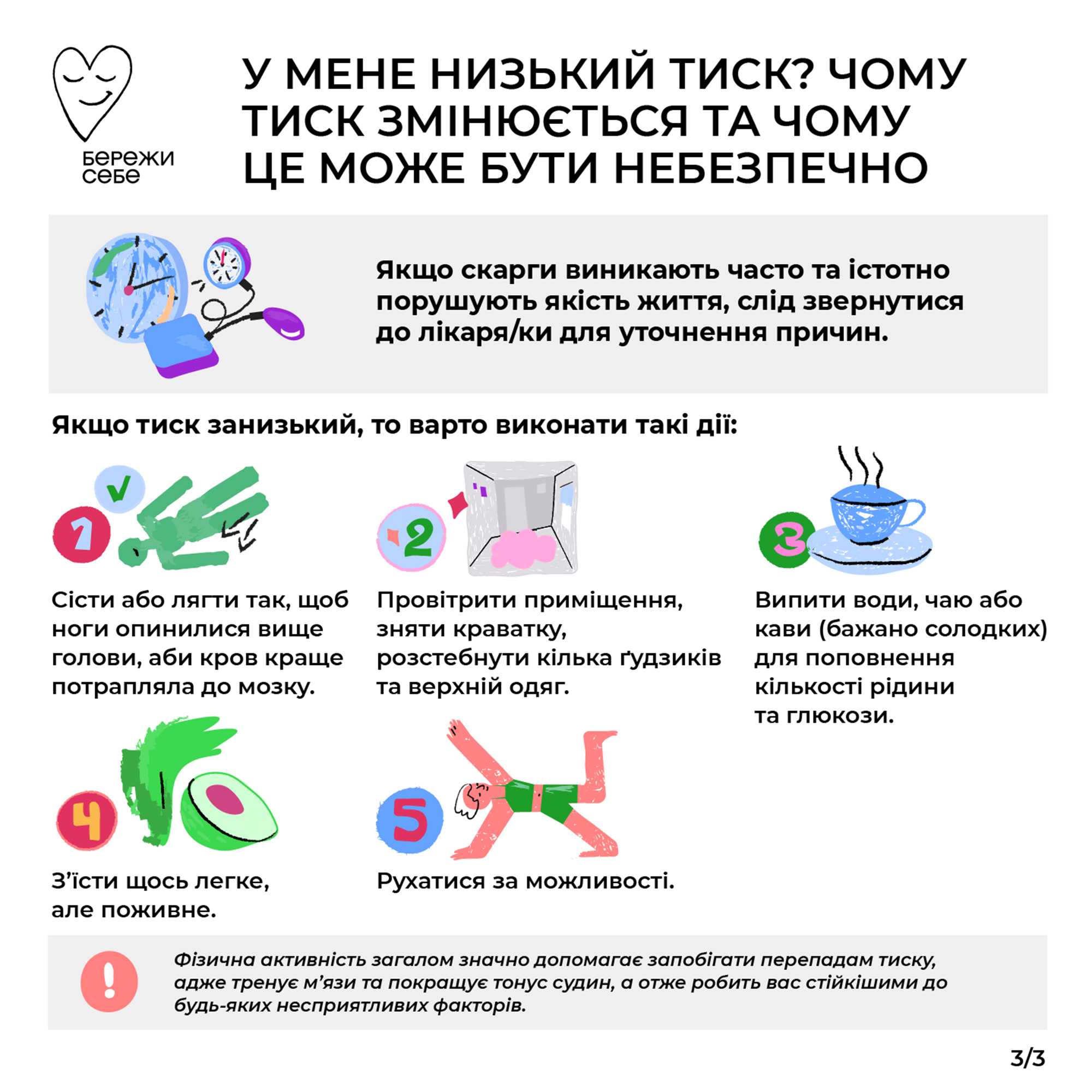 ✅ уникати стресових ситуацій , менше нервувати / хвилюватися (до речі, незайве проконсультуватися з фахівцем із ментального здоров‘я, позаяк нерідко гіпотонія має психосоматичну природу – телефон для попереднього запису до психологині ЦПМСД №1 ☎️: +380975354891);